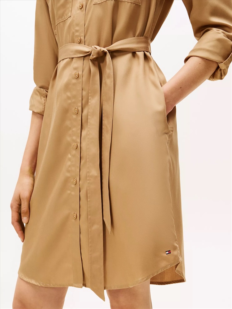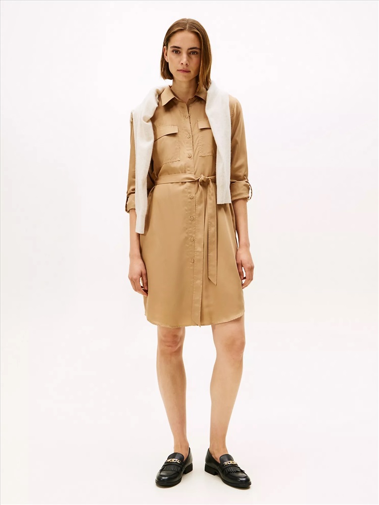 Tommy Hilfiger women's dress. Work-week dressing just got easier. Our utility-inspired shirtdress features chest pockets and a belted waist. Made from lightweight, smooth lyocell, this piece falls with a flattering drape.