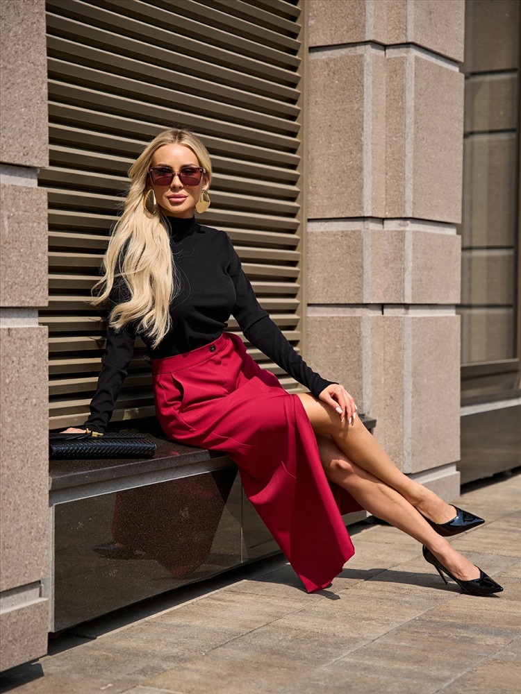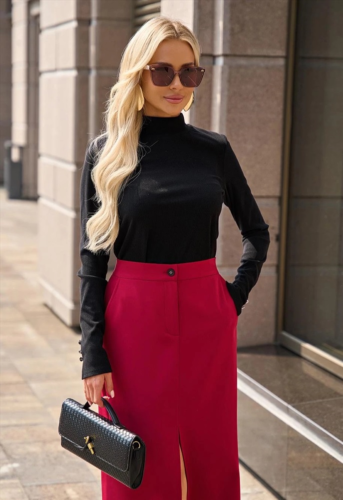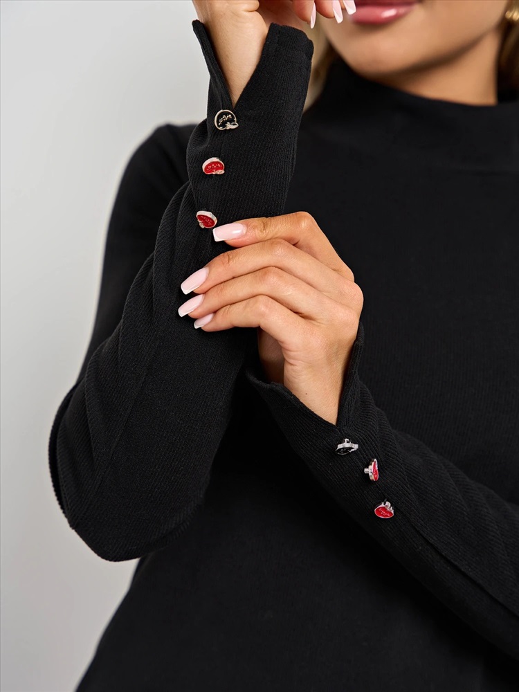 Воротник - стойка. Изделие из плотного трикотажа "лапша". Длинные втачные рукава с небольшими разрезами по краям, декорированы пуговицами. Комментарии к товару