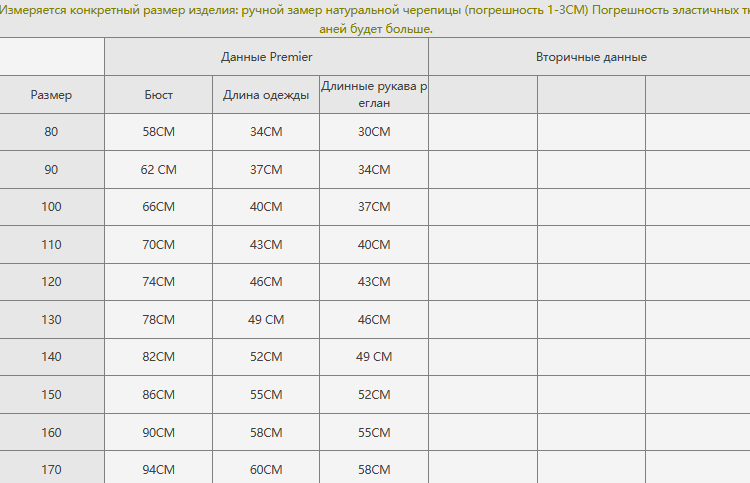 Размер: 80, 90, 100, 110, 120, 130, 140, 150, 160, 170