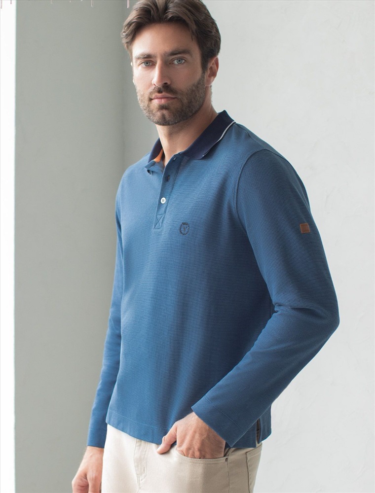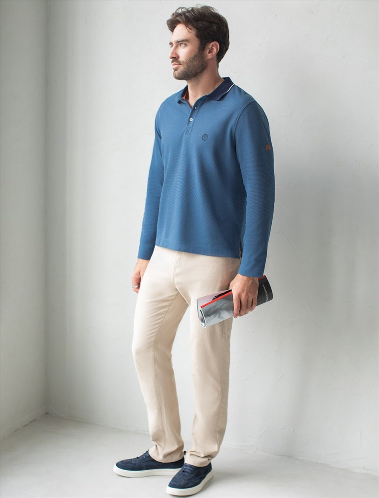 Плотность: 170 Г/м2 Стильный лонгслив светло-синего цвета с плетеным воротником поло с застежкой на пуговицы выполнен из премиального хлопка в сочетании с эластаном .Невероятно мягкая ткань из натуральных волокон - она едва ощутима на коже и словно обнимает тело. Материал при касании кажется бархатистым, при движении он словно повторяет все мельчайшие линии фигуры. По свойствам материал сочетает в себе практичность и нежность: отлично провускает воздух, сохраняя ощущение свежести в течение всего дня, при этом созраняет тепло в прохладную погоду.Идеально подходит для чувствительной кожи, не вызывает раздражения и дискомфорта. Удобный отложной воротник делает образ современным и стильным, а длинные рукава с манжетами защищают руки при ветреной погоде. Поло хорошо садится по фигуре благодаря добавлению эластичных волокон — такой вариант подходит для мужчин любого роста и размеров, не стесняет движений и создает ощущение свободы и легкости. Повседневный лонгслив дополнен ненавязчивой вышивкой на груди в виде логотипа бренда в тон основному цвету, которая придает образу индивидуальность, не перегружая его лишними акцентами. Лаконичная вышивка служит оригинальным декоративным элементом, гармонично вписываясь в общий минималистичный облик. Такой подход делает лонг универсальным решением для тех, кто ценит простоту и стремится подчеркнуть свой вкус через детали. На рукаве нашивка из эко-кожи с логотипом бренда, по бокам небольшие разрезы - дополняют современный дизайн лонгслива. Легкий джемпер идеально комбинируется как с классическими брюками, так и с джинсами или шортами — универсальность этой модели оценит каждый мужчина, предпочитающий удобную одежду для активного дня. Легкий и дышащий материал делает повседневный лонгслив практичным для ношения в переменчивую осеннюю погоду, когда температура еще не слишком низкая, но уже ощущается прохлада. Комментарии к товару