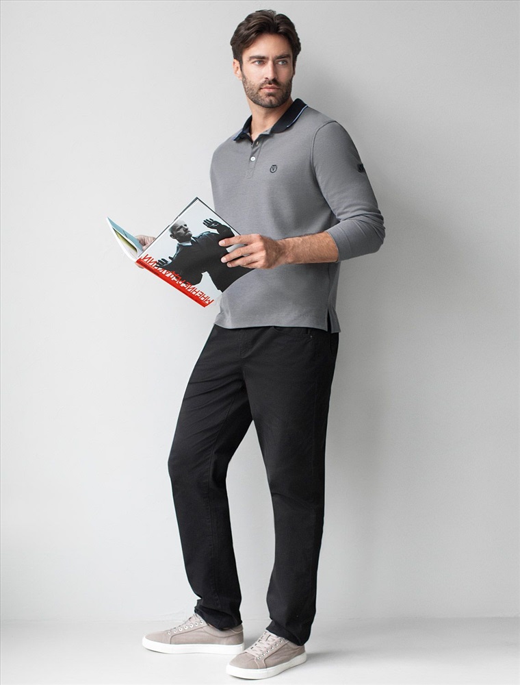 Плотность: 170 Г/м2 Стильный лонгслив темно-серого цвета с плетеным воротником поло с застежкой на пуговицы выполнен из премиального хлопка в сочетании с эластаном .Невероятно мягкая ткань из натуральных волокон - она едва ощутима на коже и словно обнимает тело. Материал при касании кажется бархатистым, при движении он словно повторяет все мельчайшие линии фигуры. По свойствам материал сочетает в себе практичность и нежность: отлично провускает воздух, сохраняя ощущение свежести в течение всего дня, при этом созраняет тепло в прохладную погоду.Идеально подходит для чувствительной кожи, не вызывает раздражения и дискомфорта. Удобный отложной воротник делает образ современным и стильным, а длинные рукава с манжетами защищают руки при ветреной погоде. Поло хорошо садится по фигуре благодаря добавлению эластичных волокон — такой вариант подходит для мужчин любого роста и размеров, не стесняет движений и создает ощущение свободы и легкости. Повседневный лонгслив дополнен ненавязчивой вышивкой на груди в виде логотипа бренда в тон основному цвету, которая придает образу индивидуальность, не перегружая его лишними акцентами. Лаконичная вышивка служит оригинальным декоративным элементом, гармонично вписываясь в общий минималистичный облик. Такой подход делает лонг универсальным решением для тех, кто ценит простоту и стремится подчеркнуть свой вкус через детали. На рукаве нашивка из эко-кожи с логотипом бренда, по бокам небольшие разрезы - дополняют современный дизайн лонгслива. Легкий джемпер идеально комбинируется как с классическими брюками, так и с джинсами или шортами — универсальность этой модели оценит каждый мужчина, предпочитающий удобную одежду для активного дня. Легкий и дышащий материал делает повседневный лонгслив практичным для ношения в переменчивую осеннюю погоду, когда температура еще не слишком низкая, но уже ощущается прохлада. Комментарии к товару