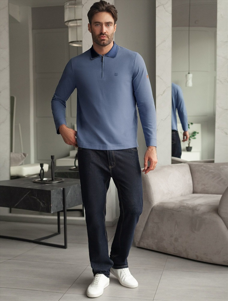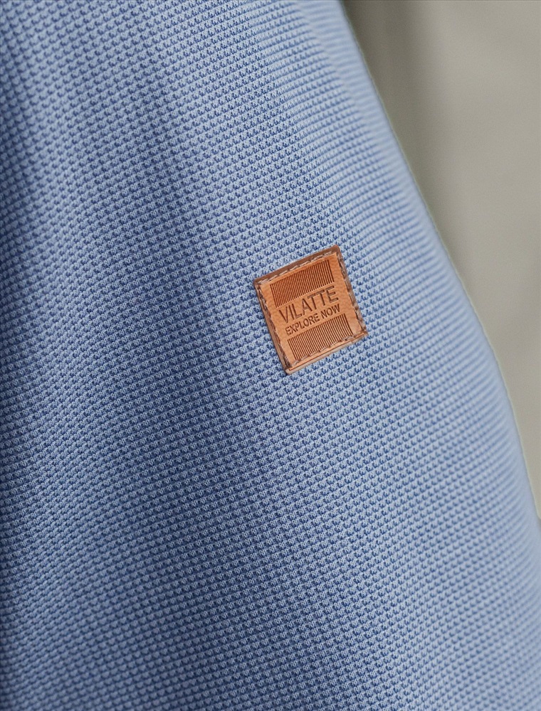 Стильный лонгслив светло-синего цвета с плетеным воротником поло с застежкой на молнию выполнен из премиального хлопка в сочетании с эластаном .Невероятно мягкая ткань из натуральных волокон - она едва ощутима на коже и словно обнимает тело. Материал при касании кажется бархатистым, при движении он словно повторяет все мельчайшие линии фигуры. По свойствам материал сочетает в себе практичность и нежность: отлично провускает воздух, сохраняя ощущение свежести в течение всего дня, при этом созраняет тепло в прохладную погоду.Идеально подходит для чувствительной кожи, не вызывает раздражения и дискомфорта. Удобный отложной воротник делает образ современным и стильным, а длинные рукава с манжетами защищают руки при ветреной погоде.