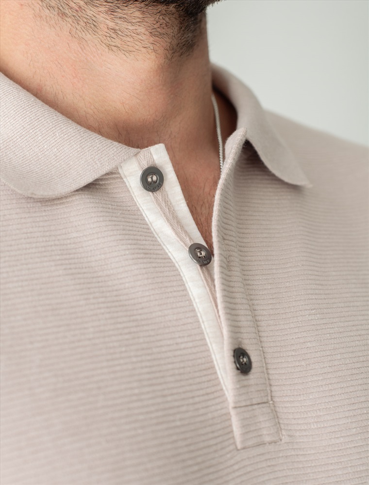 Стильный лонгслив светло-кофейного цвета с эффектом меланж с плетеным воротником поло с застежкой на металлические пуговицы выполнен из премиального хлопка в сочетании с эластаном .Невероятно мягкая ткань из натуральных волокон - она едва ощутима на коже и словно обнимает тело. Материал при касании кажется бархатистым, при движении он словно повторяет все мельчайшие линии фигуры. По свойствам материал сочетает в себе практичность и нежность: отлично пропускает воздух, сохраняя ощущение свежести в течение всего дня, при этом в нем тепло в прохладную погоду. Идеально подходит для чувствительной кожи, не вызывает раздражения и дискомфорта. Удобный отложной воротник с контрастной отделкой делает образ современным и стильным, а длинные рукава с манжетами защищают руки при ветреной погоде.