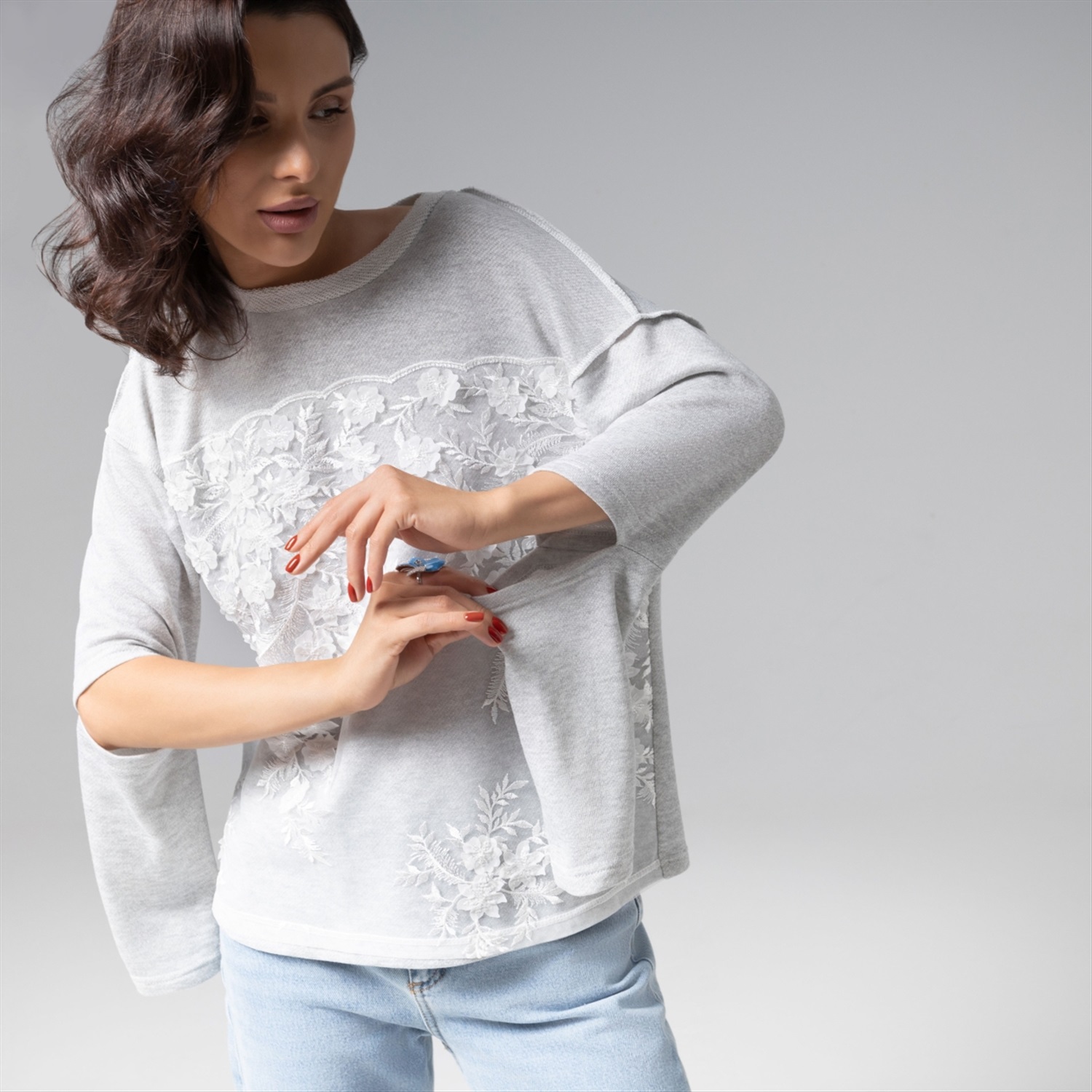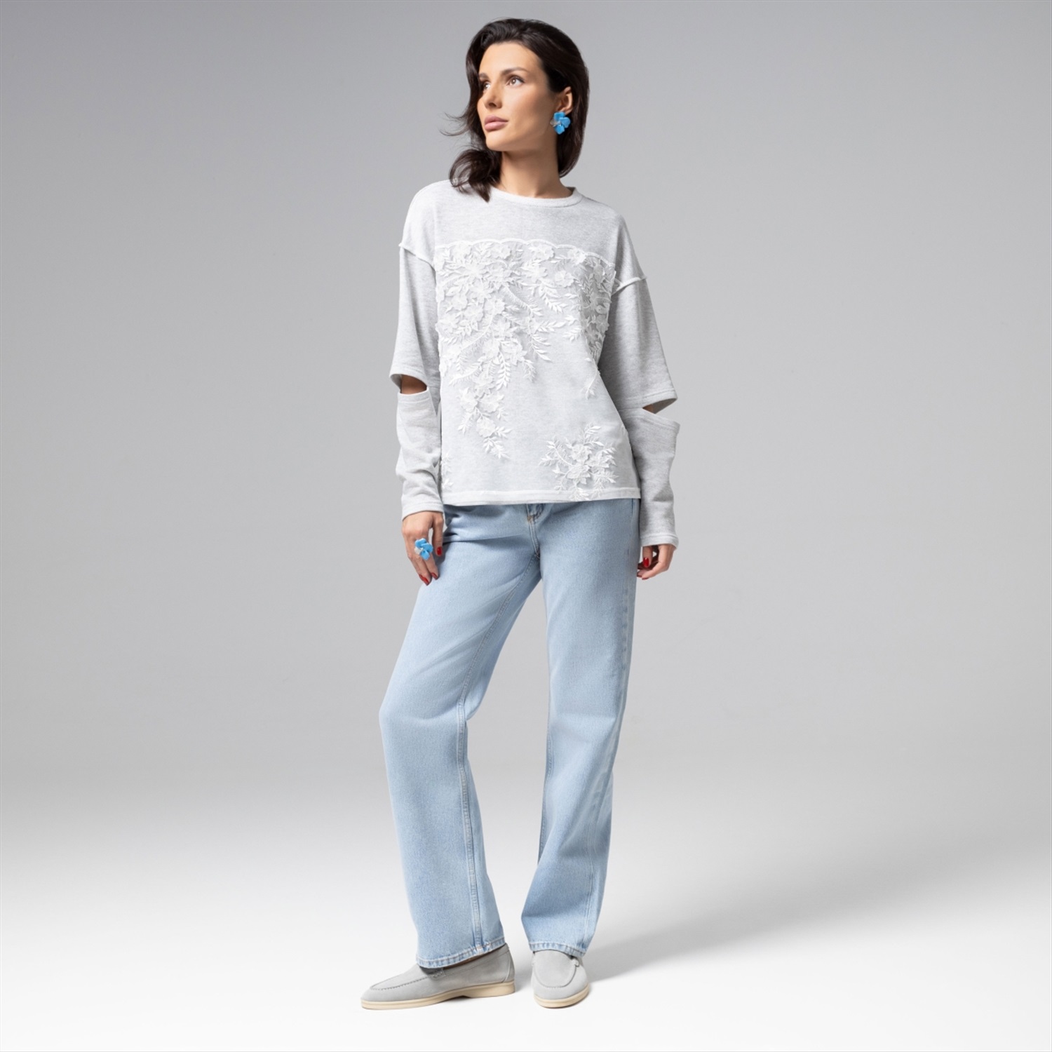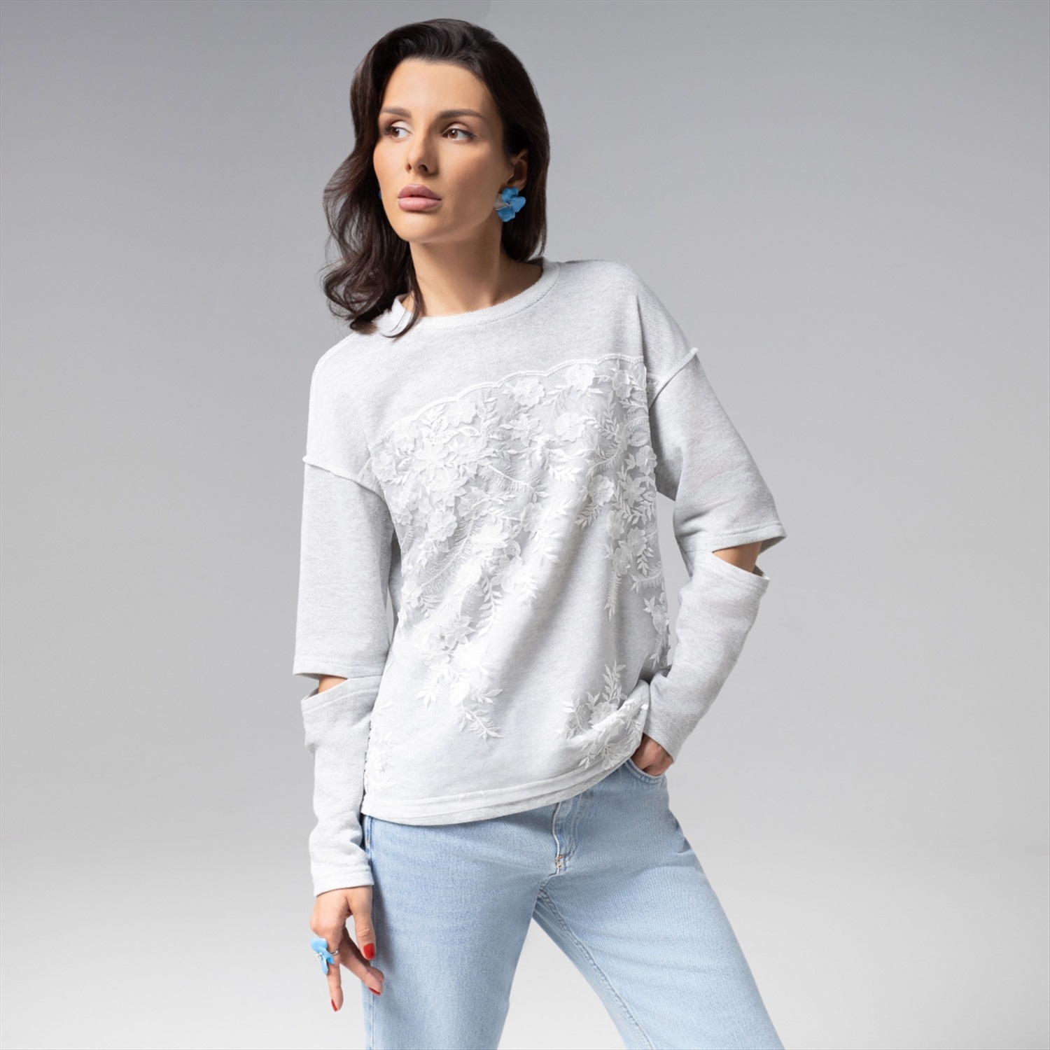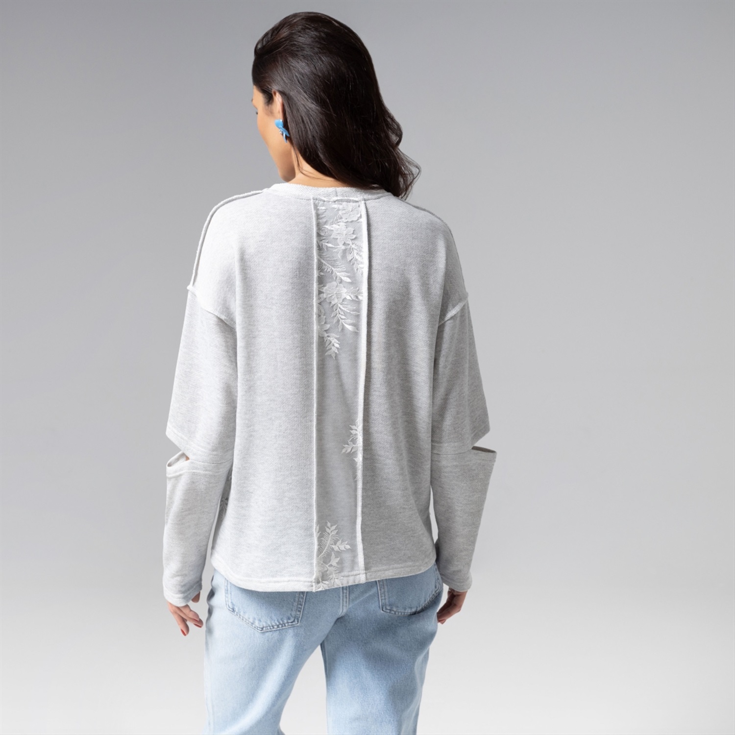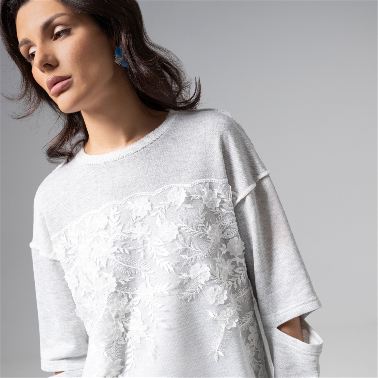 Состав: Трикотаж "футер", вышивка на сетке (50% хлопок, 45% п/э, 5% спандекс)