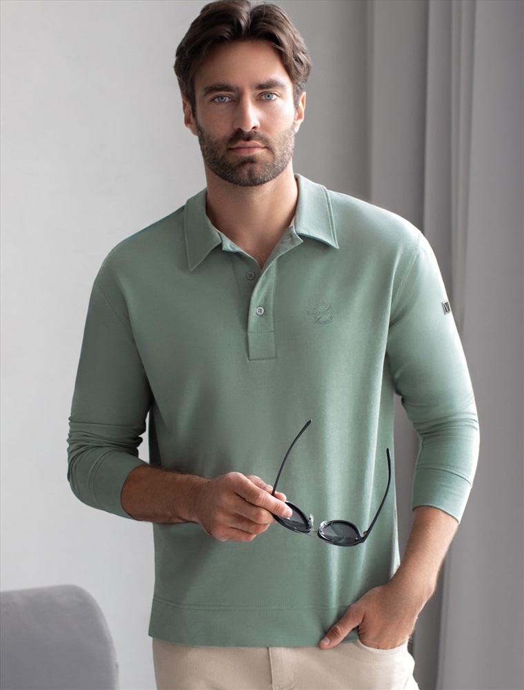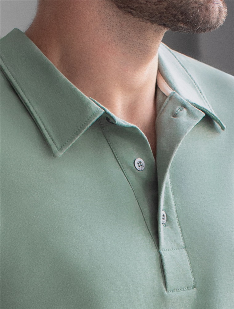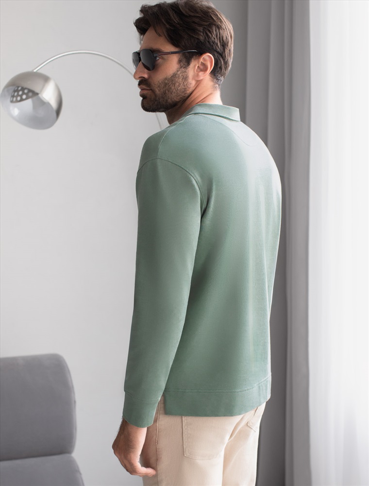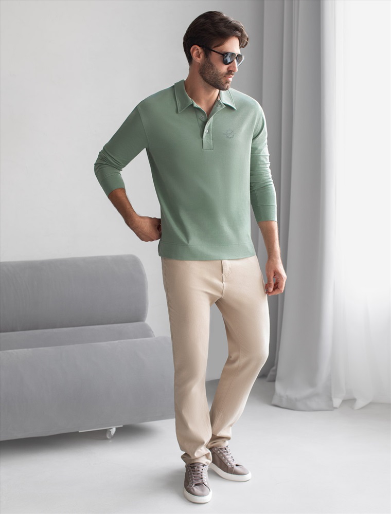 Стильный лонгслив светло-оливкового цвета с воротником поло выполнен из премиального хлопка в сочетании с эластаном . Натуральная ткань обеспечивает легкость, воздухопроницаемость и приятные тактильные ощущения даже когда жарко, позволяет не перегреваться и поддерживает комфортный микроклимат в течение всего дня. Удобный отложной воротник на аккуратных пуговицах делает образ современным и стильным, а длинный рукав защищает руки при ветреной погоде. Поло хорошо садится по фигуре благодаря добавлению эластичных волокон — такой вариант подходит для мужчин любого роста и размеров, не стесняет движений и создает ощущение свободы и легкости.