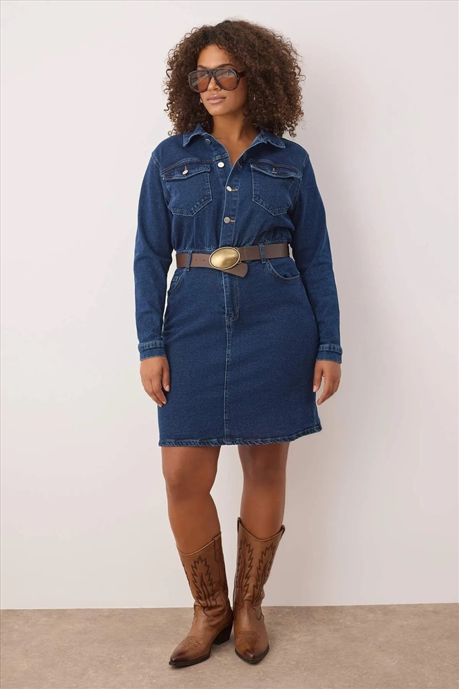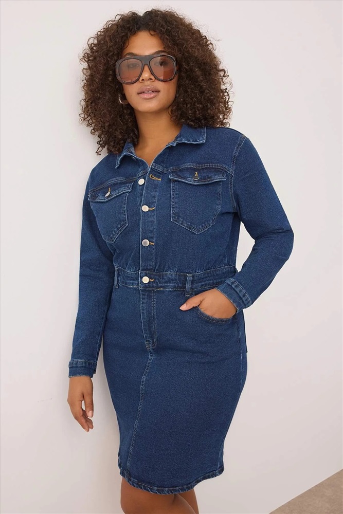 Mavi Gömlek Yaka Orta Esnek Denim Büyük Beden Elbise TBBAW26AH00015