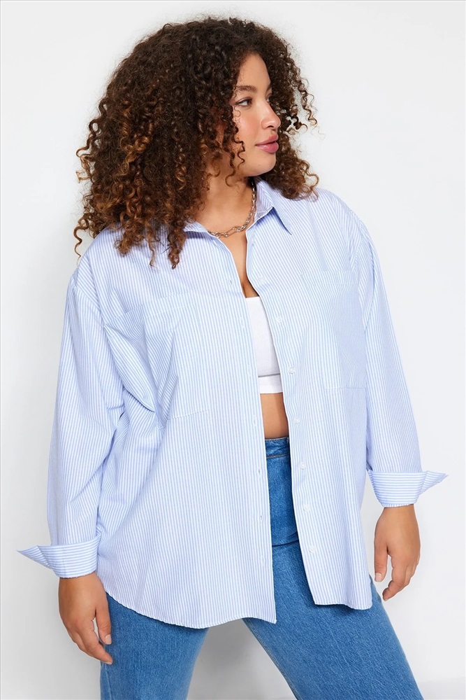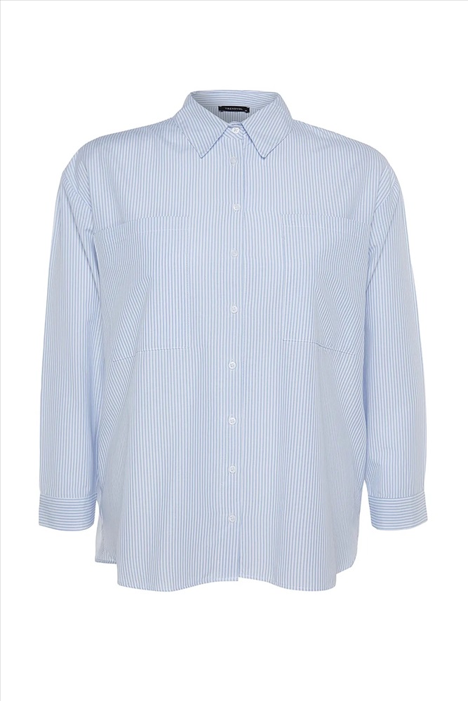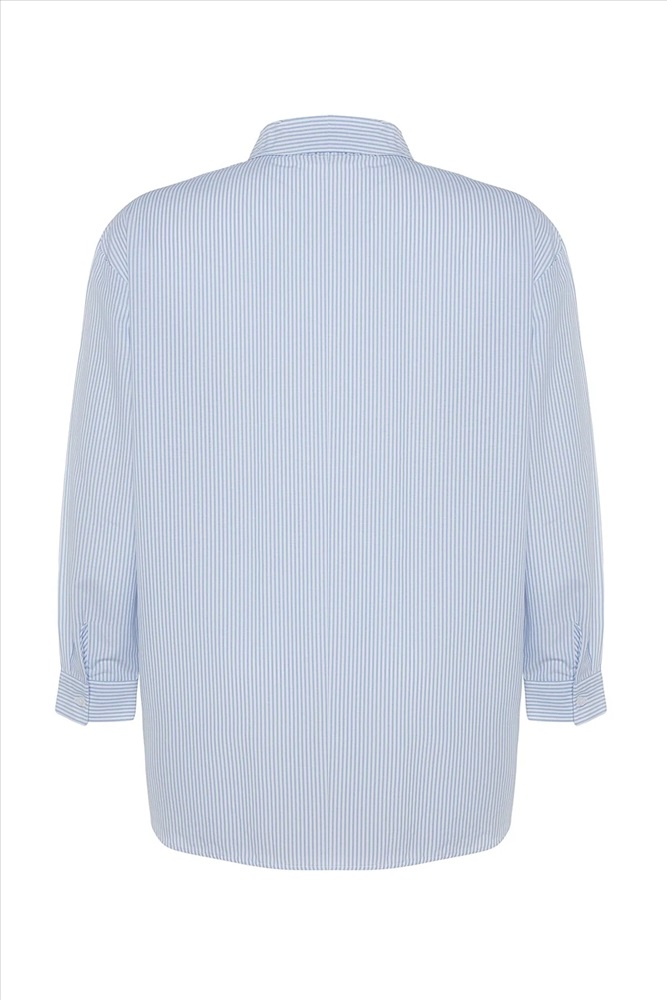 Mavi Çizgili Uzun Kol Dokuma Büyük Beden Gömlek TBBAW24AX00001