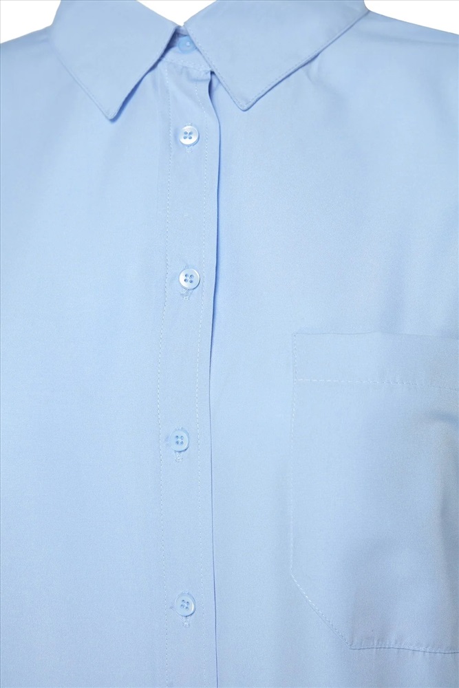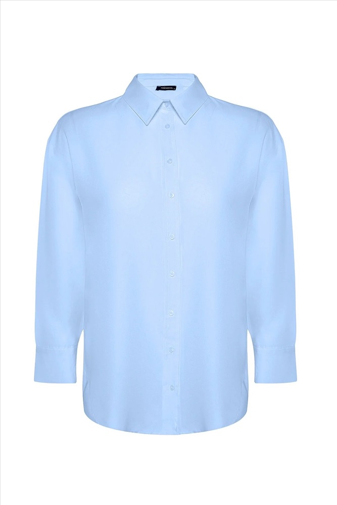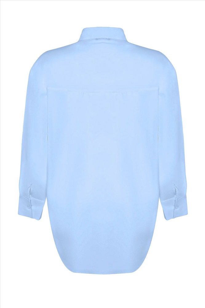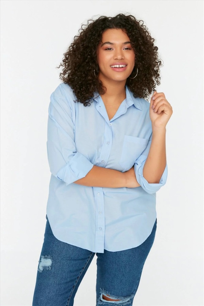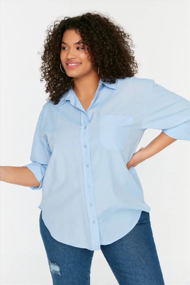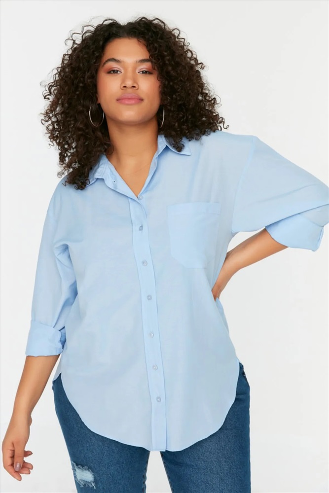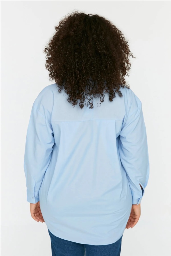 Mavi Loose Fit Pamuklu Uzun Kol Büyük Beden Dokuma Gömlek TBBSS22GO0323