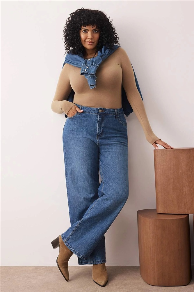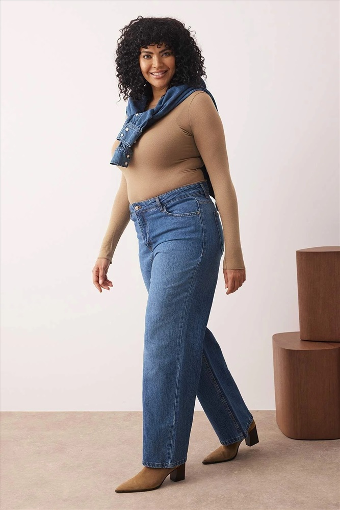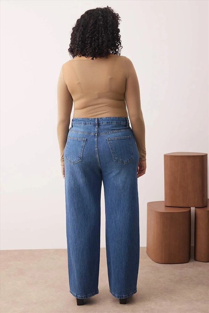 Mavi Yüksek Bel Geniş Paça Denim Büyük Beden Wide Leg Jeans TBBAW26CJ00001