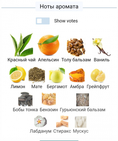 Верхние ноты: Лимон, Бергамот и Гвоздика (пряность); средние ноты: Красный чай, Мате и Цветок апельсина; базовые ноты: Ваниль, Бензоин и Лабданум.