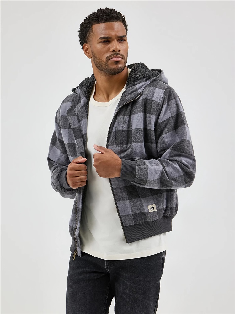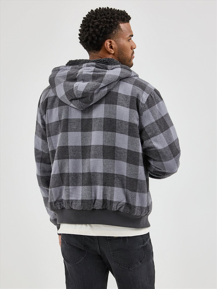 MEN'S SHERPA LINED FLANNEL BOMBER JACKET