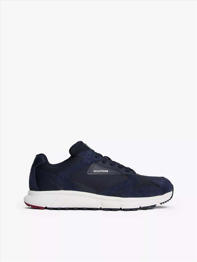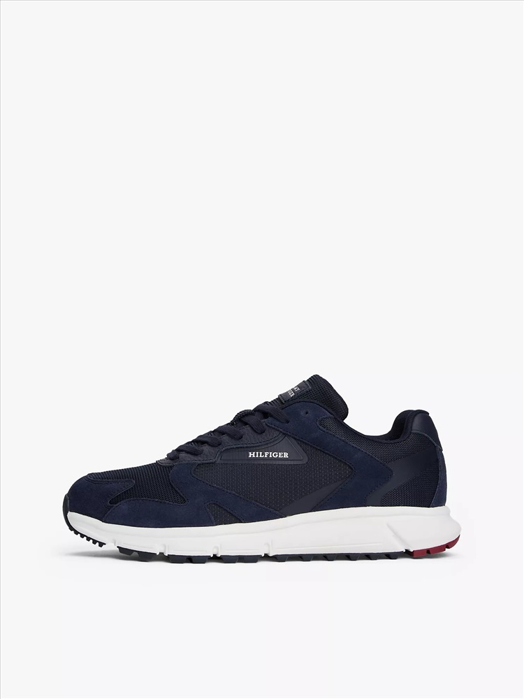 Tommy Hilfiger men's sneaker. Thanks to the durable yet breathable upper and treaded sole, our suede runner sneaker is the ideal outdoor companion.