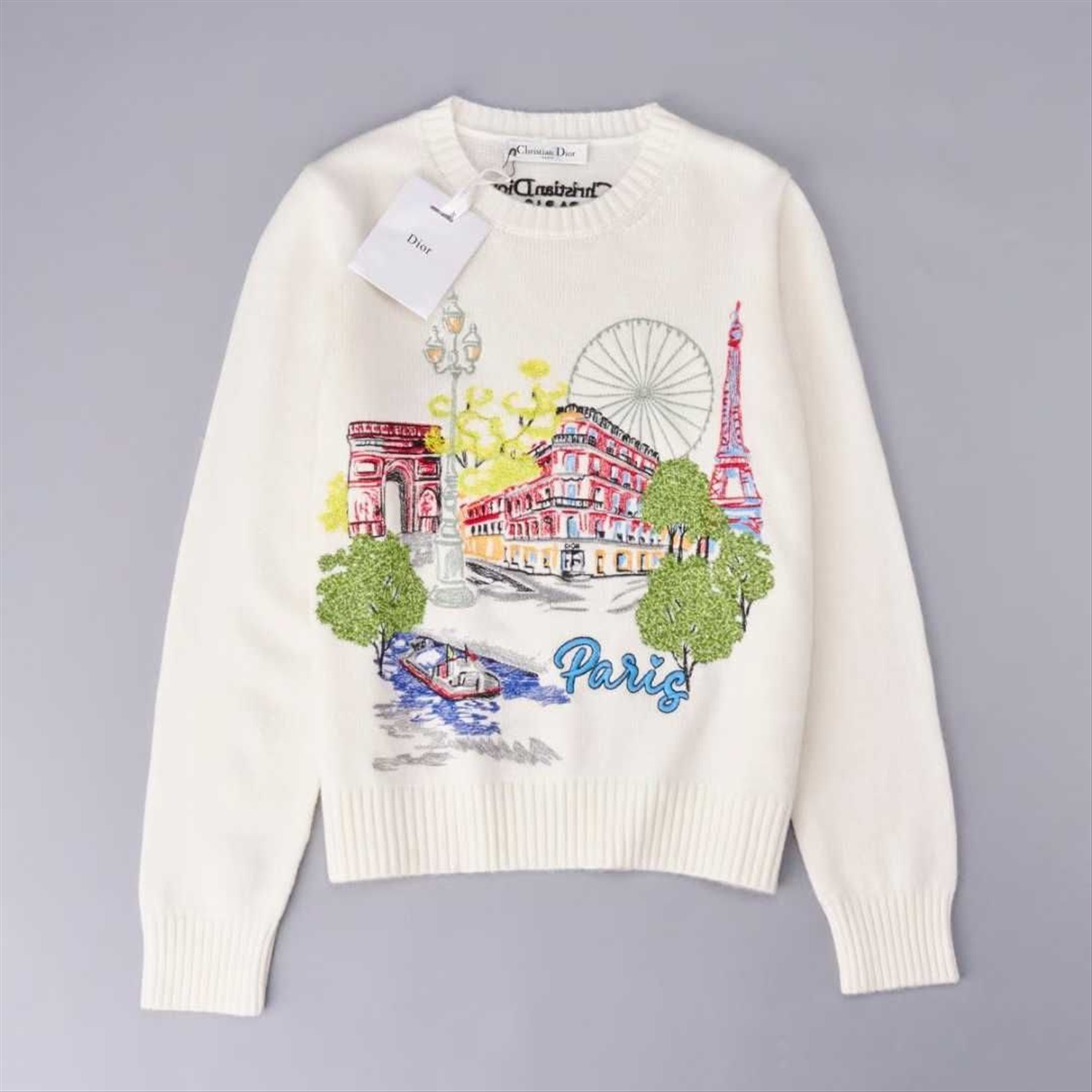Модный женский кардиган с вышивкой и круглым вырезом Dio*r