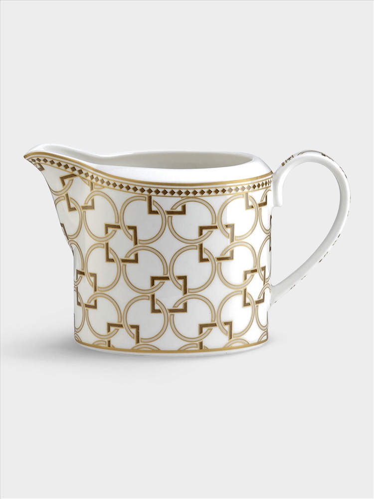 Бренд: POZZI MILANO Молочник, 250 мл, фарфор N, бело-бежевый, Круги и квадраты, с золотистым кантом, Deco. Материал: фарфор New Bone China. Мыть тёплой водой с применением ЖМС. Можно использовать в СВЧ и посудомоечной машине.