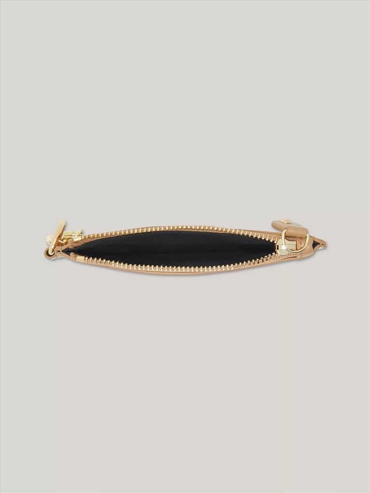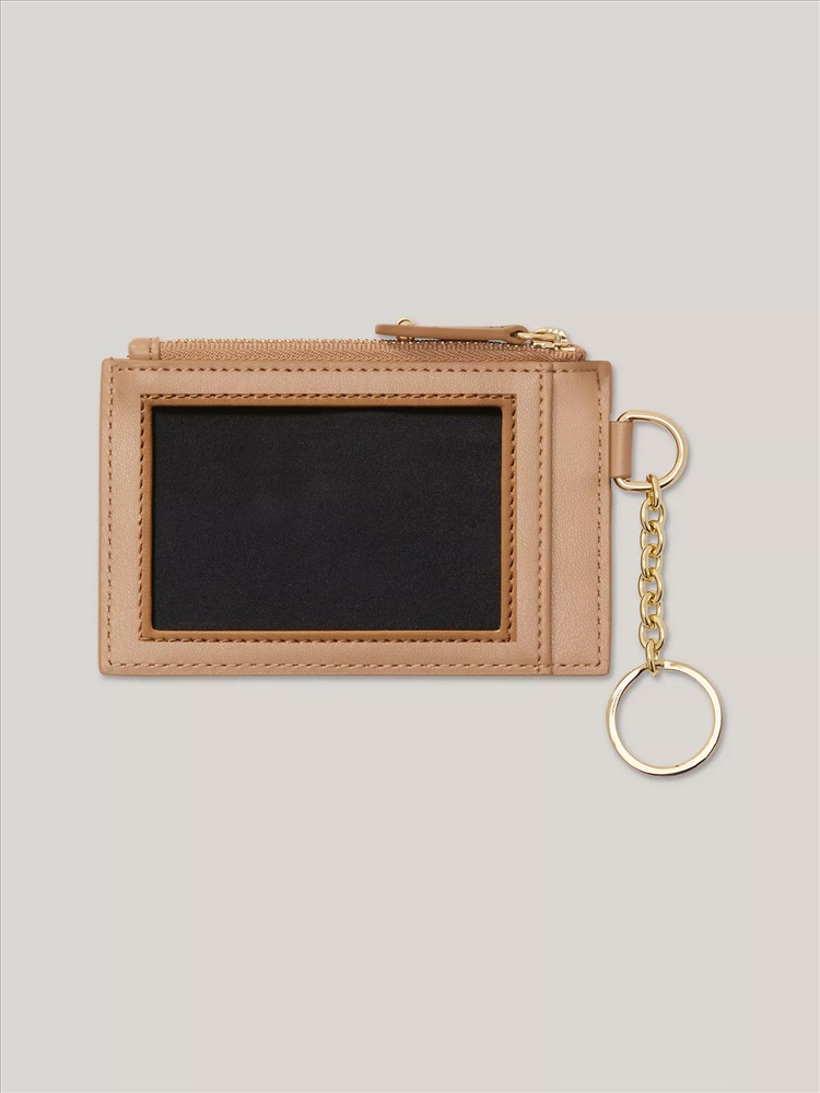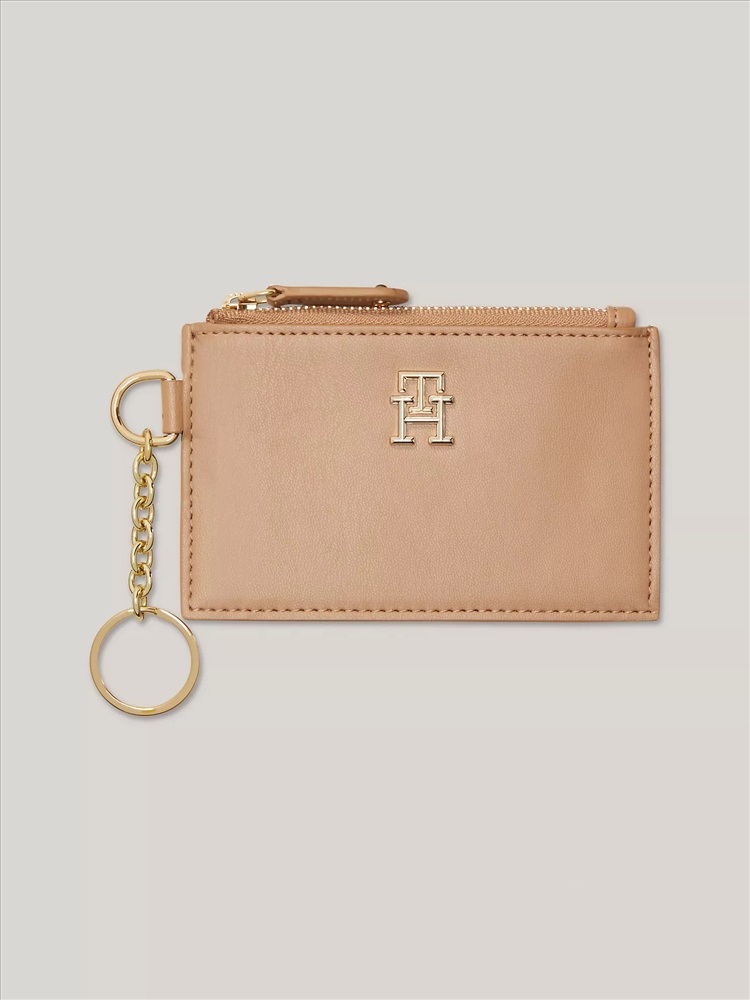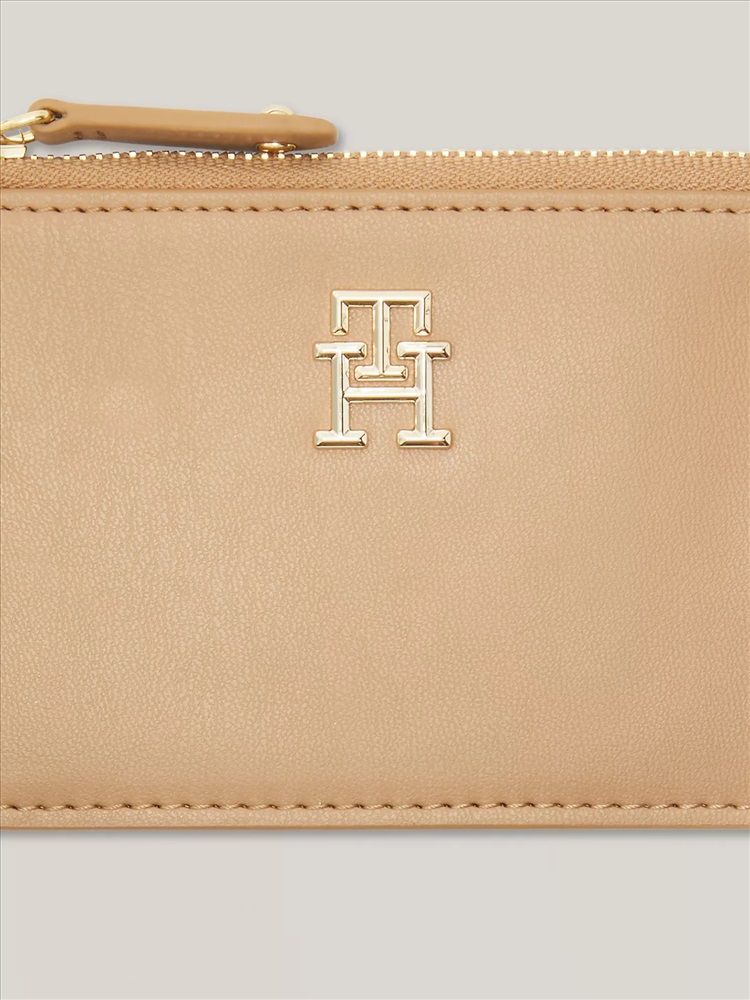 Tommy Hilfiger women's wallet. Keep your coins safely stowed in this compact zip wallet featuring our TH monogram. Our designers included an ID window on one side of the wallet for added convenience.