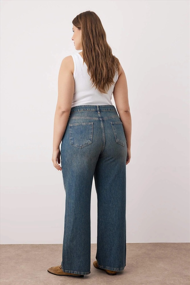 More Sustainable Mavi Soluk Efekt Vintage Yüksek Bel Wide Leg Jeans TBBAW26CJ00048