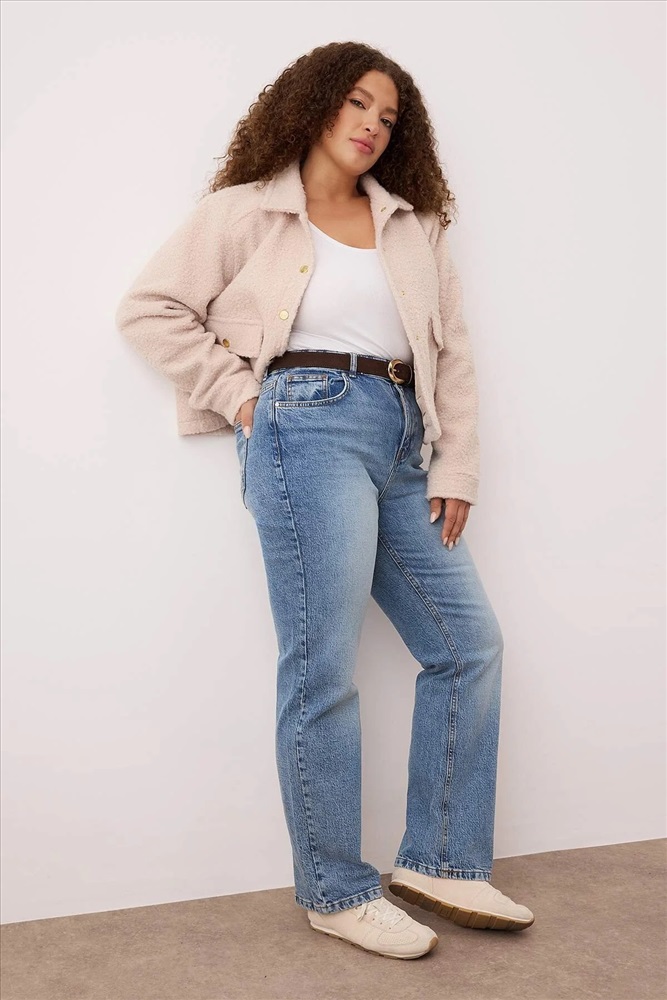 More Sustainable Mavi Yüksek Bel Comfort Straight Fit Büyük Beden Jeans TBBAW24CJ00045