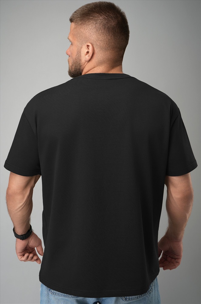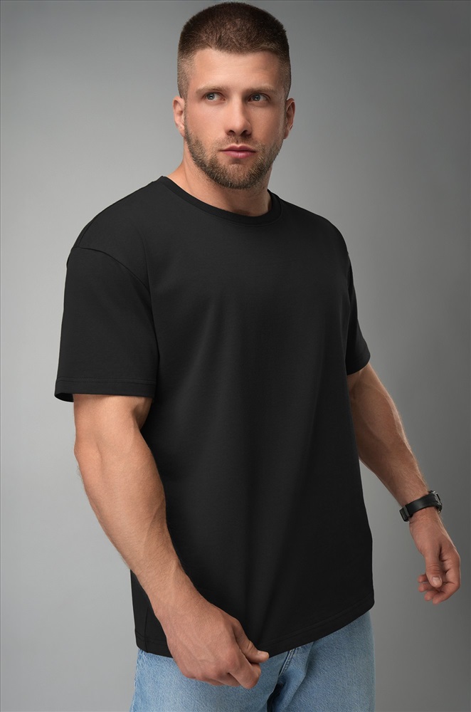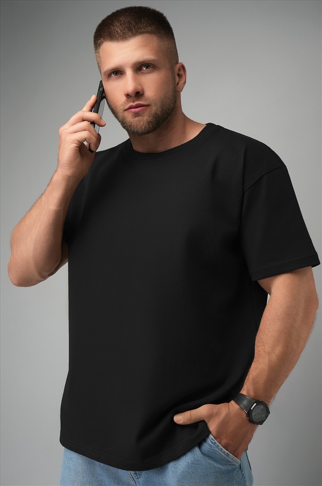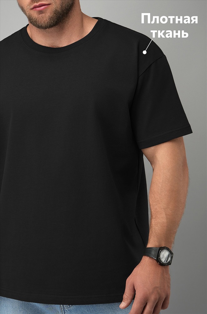 Базовая чернaя мужская футболка — универсальный элемент твоего образа. Плотная хлопковая футболка — максимум удобства в течение дня.