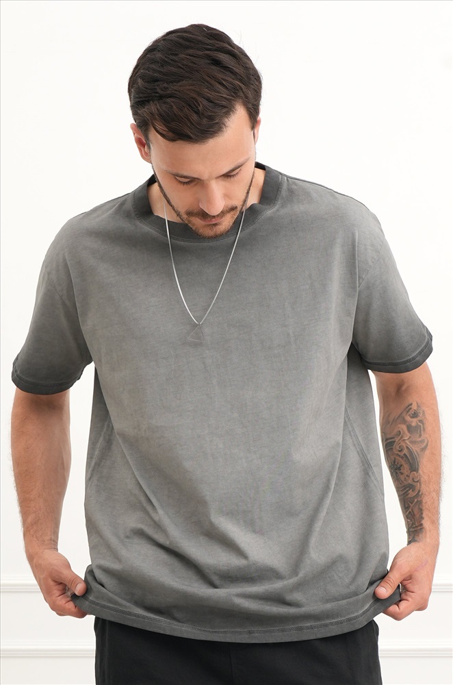 Мужская футболка с вареным эффектом — идеальное сочетание трендового дизайна и хлопковой ткани. Плотная футболка оверсайз — идеальный выбор для образов в стиле кэжуал.