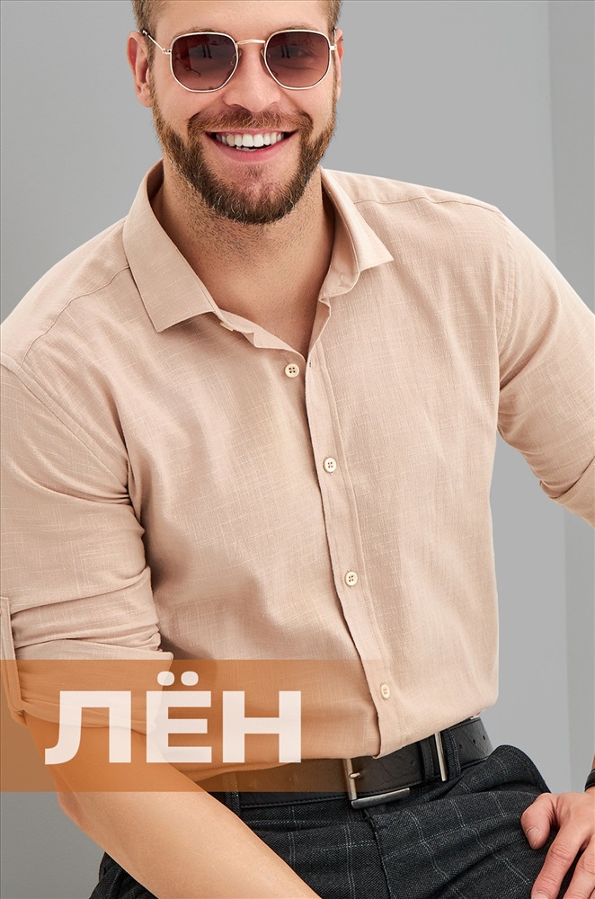 Однотонная рубашка подойдет для офиса, учебы и официальных мероприятий. Льняная сорочка для мужчин станет крутой базой на каждый день. В классической бежевой рубашке будь безупречен в любой ситуации!