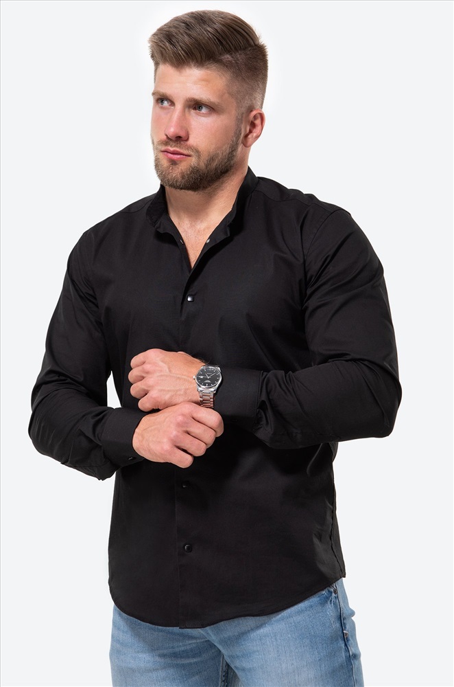 Мужская рубашка — идеальный вариант для лета. Однотонная черная сорочка создана для тех мужчин, кто ценит комфорт, но не забывает о выразительности в деталях.