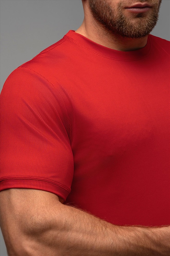 Однотонная мужская футболка в рубчик – отличное решение для спорта. Спортивная красная футболка из полиэстера отлично пропускает воздух и отводит лишнюю влагу, позволяя сосредоточиться только на тренировочном процессе. Прохладная ткань супрем дарит приятные тактильные ощущения, не намокает и не прилипает к телу даже при высоких нагрузках. Модель легко отстирывается в прохладной воде, быстро высыхает и почти не мнется. Мягкая горловина и аккуратные ровные швы обеспечивают отсутствие натираний и раздражений. Прямой крой дарит идеальную посадку и полную свободу движений. Футболка для мужчин рассчитана на интенсивные занятия и поможет повысить качество тренировок. Эту модель оценит каждый, кто заботится о своей физической форме. Футболка алого цвета отлично подойдет к любой форме для тренажерного зала. Модель Артем, его рост 172, параметры: 114-86-100. На нем размер 50.