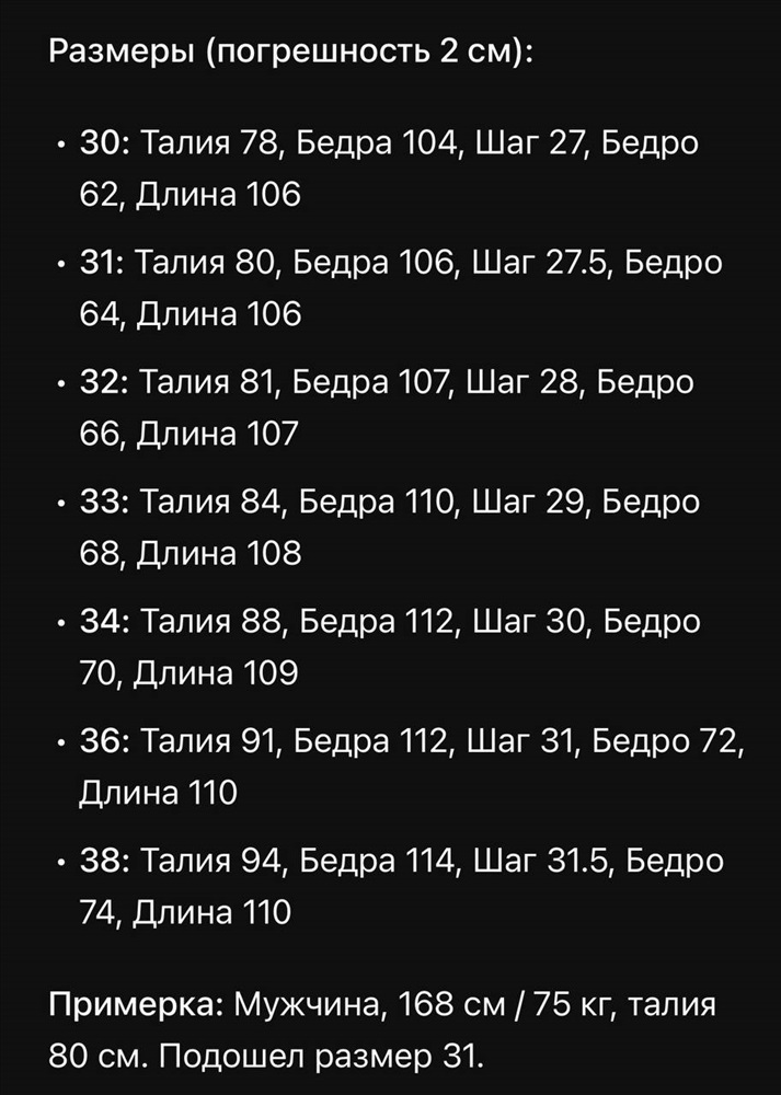 2 цвета Прямой крой с небольшим сужением Материал: 97% хлопок 3% лайкра Размеры: 30 31 32 33 34 36 38 Комментарии к товару
