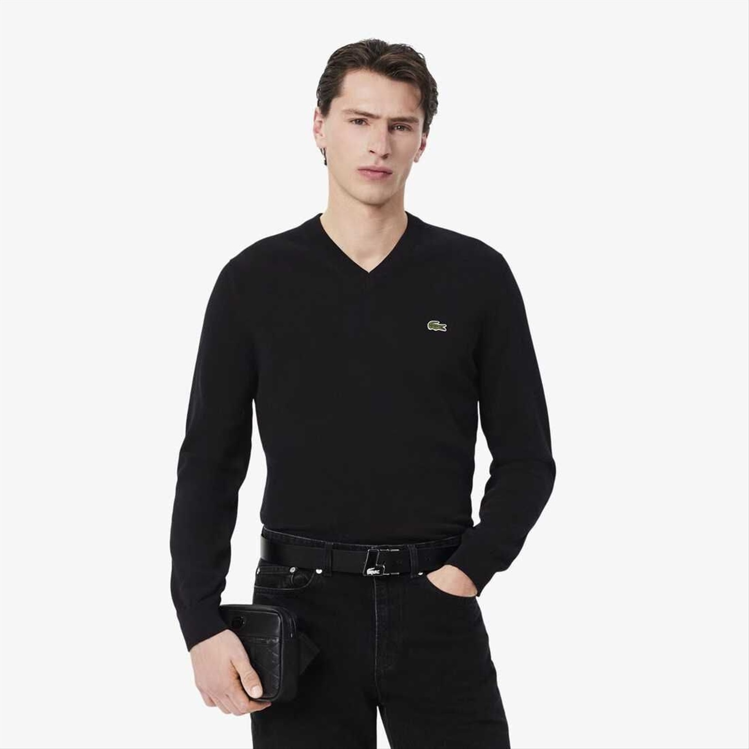 Мужской вязаный пуловер с V-образным вырезом и с небольшой вышивкой логотипа бренда LACOST*E ОРИГИНАЛ!