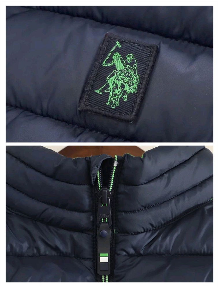 Два варианта: темный синий с красным воротником и темно-синий с зелёным воротником