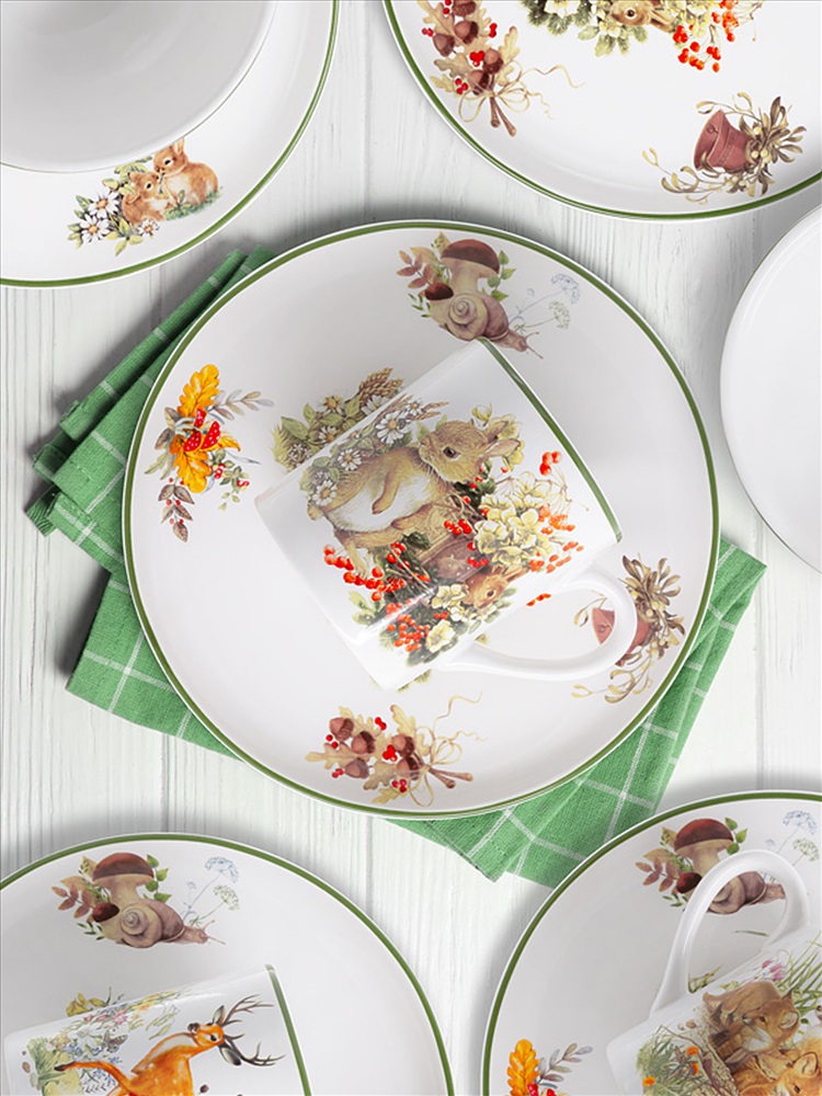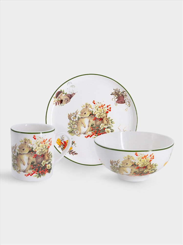 Набор посуды, 3 пр, керамика, белый, Зайчата, Childhood. Материал: керамика. Мыть тёплой водой с применением жидких моющих средств и в посудомоечной машине. Можно использовать в СВЧ.