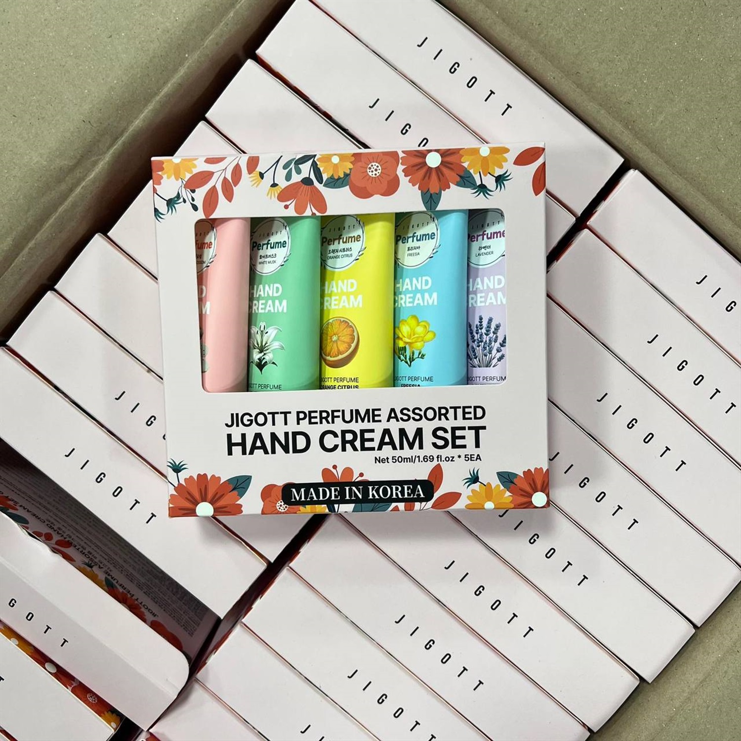 Набор из 5 парфюмированных кремов для рук создан для ухода за кожей, увлажнения и питания. Каждый крем обладает легкой текстурой, быстро впитывается, не оставляя жирных следов, и насыщен натуральными компонентами для защиты и смягчения кожи рук