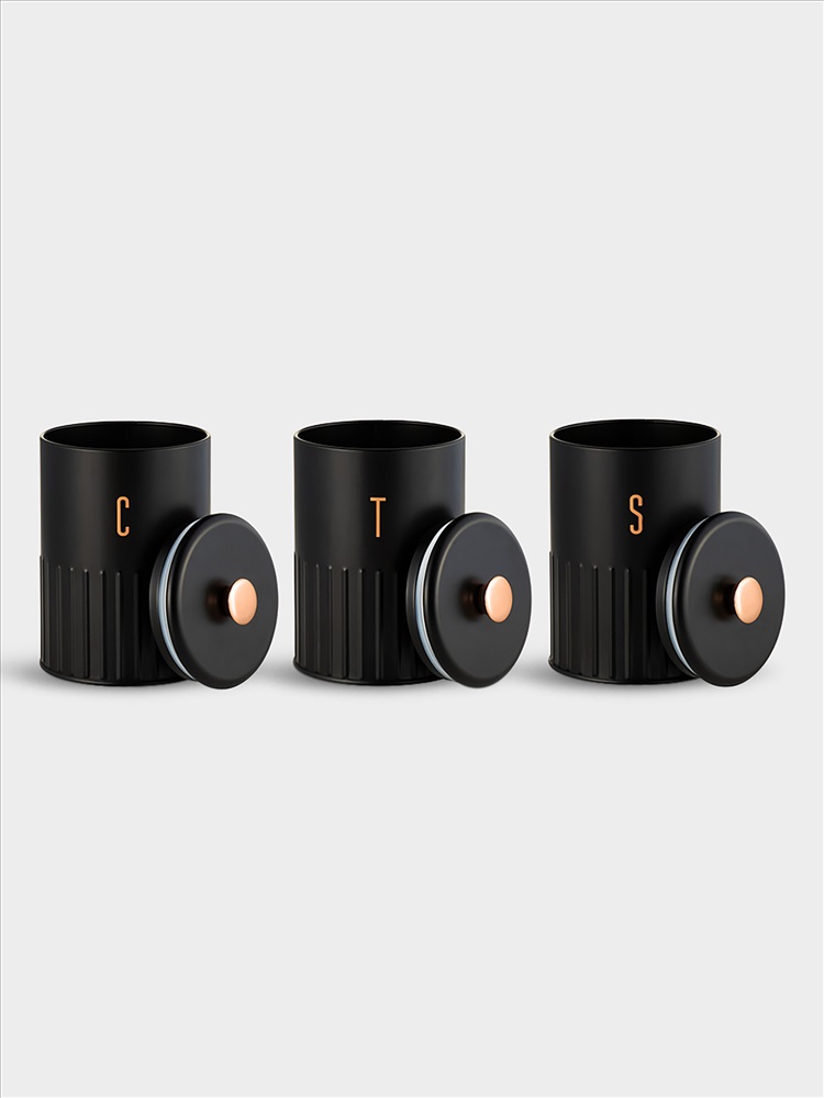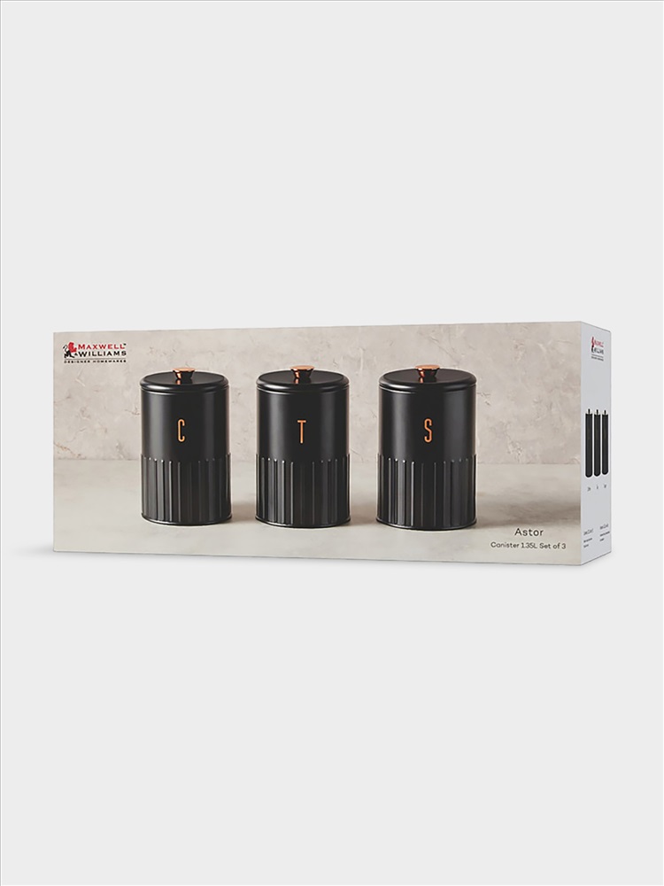 Банка для сыпучих продуктов, 3 шт, 1,35 л, сталь, черная, Astor. Материал: жесть(сталь). Протирать сухой/влажной салфеткой. Мыть тёплой водой с применением ЖМС и тщательно вытирать насухо. Не использовать в СВЧ и в ПММ.