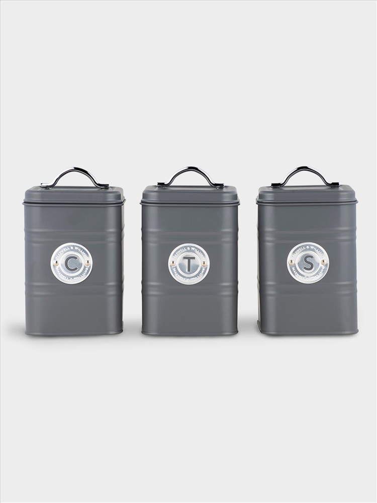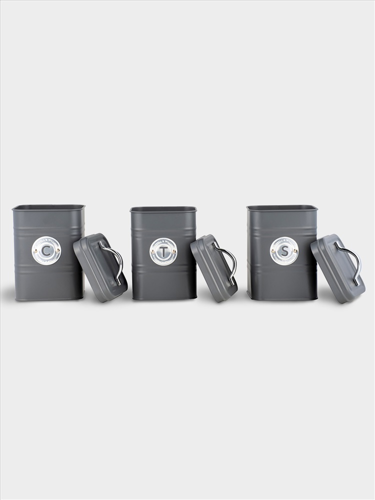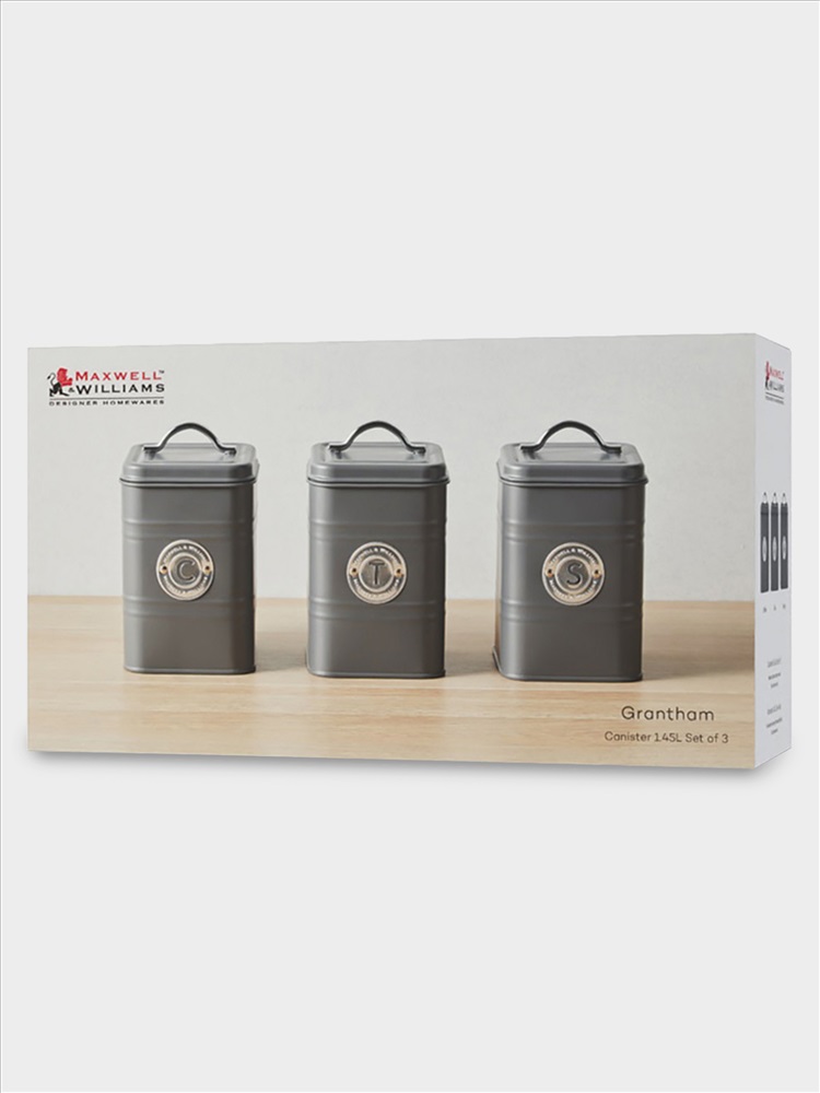 Банка для сыпучих продуктов, 3 шт, 1,45 л, сталь, серая, Grantham. Материал: жесть(сталь). Протирать сухой/влажной салфеткой. Мыть тёплой водой с применением ЖМС и тщательно вытирать насухо. Не использовать в СВЧ и в ПММ.