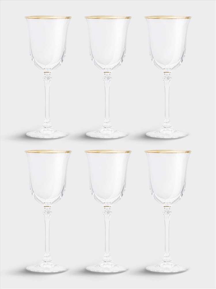 Бокал для вина, 225 мл, 6 шт, стекло хрустальное, с золотистым кантом, Gemma Gold. Материал: стекло хрустальное. Мыть мягкими моющими средствами. Можно использовать в посудомоечной машине.