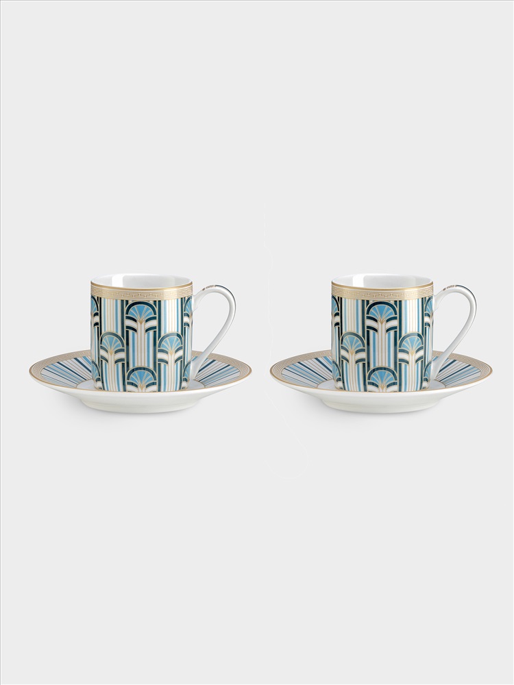 Пара кофейная, 2 перс, 4 пр, 80 мл, фарфор N, бело-синяя, Веер, с золотистым кантом, Liberty. Материал: фарфор New Bone China. Мыть тёплой водой с применением ЖМС. Можно использовать в СВЧ и мыть в посудомоечной машине.