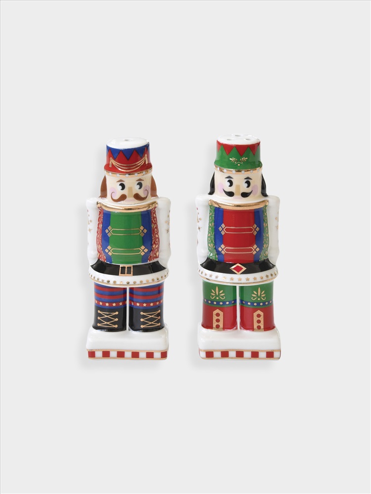 Набор для соли и перца, 9 см, фарфор P, красный/зеленый,  Щелкунчик, Nutcracker. Материал: фарфор Рorcelain. Рекомендуется ручная мойка тёплой водой с применением ЖМС. Не использовать в СВЧ и в посудомоечной машине.