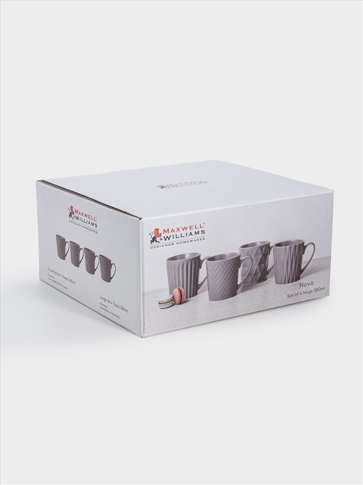 Бренд: MAXWELL & WILLIAMS Кружка, 380 мл, 4 шт, фарфор P, серая, геометрия, Nova. Материал: фарфор Рorcelain. Мыть тёплой водой с применением жидких моющих средств и в посудомоечной машине. Можно использовать в СВЧ.