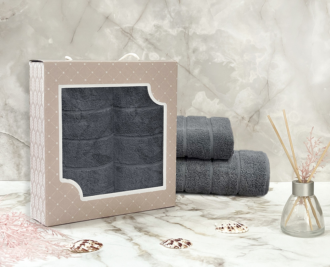 Набор полотенец махровых- 2 шт.(30х70) полосы в добби 3 вид 179 базальт