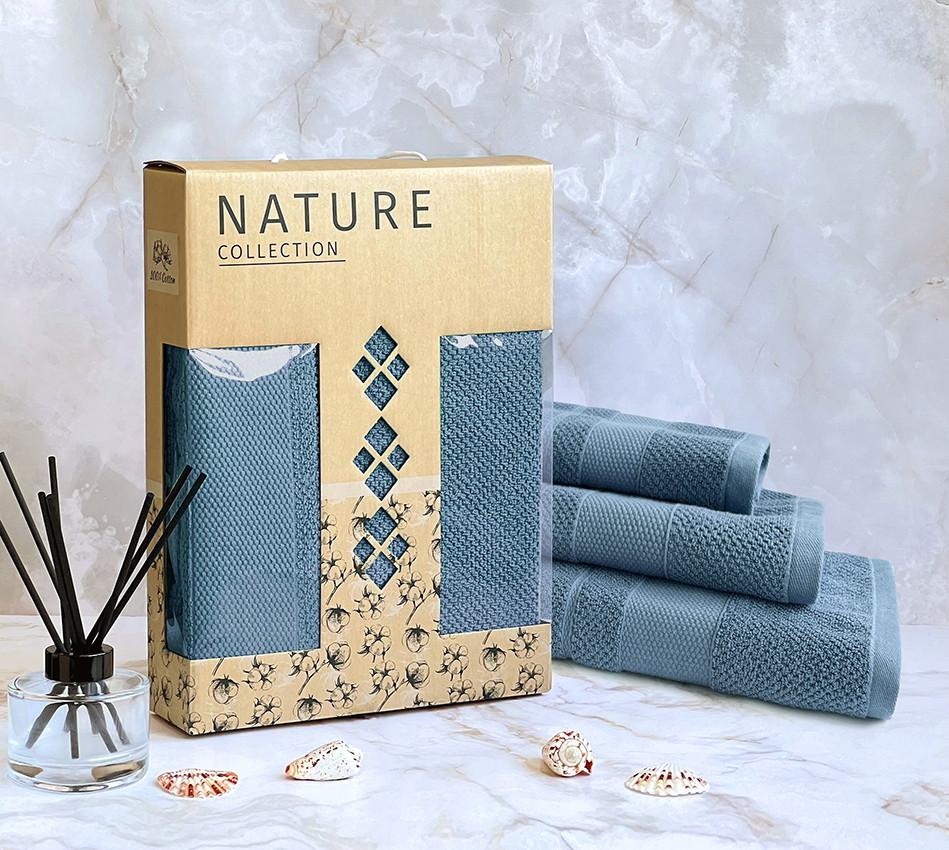 Набор полотенец махровых 3 шт Солидар 08-191 темно-голубой