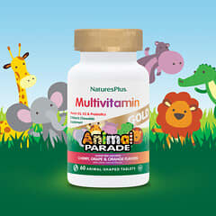 NaturesPlus, Animal Parade Gold, Children's Chewable Supplement, Cherry, Grape & Orange, 60 Animal-Shaped Tablets
