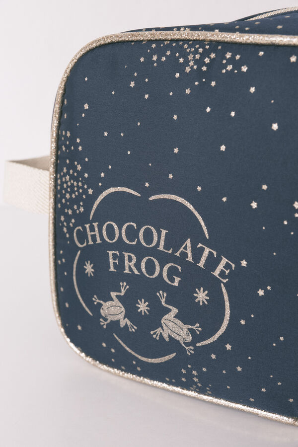 Neceser grande rectangular, confeccionado en tejido de nylon con estampado de estrellas allover y delantero con licencia de Harry Potter. Con doble cierre de cremallera, asa de brillo a contraste y detalles de lurex.