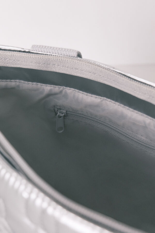 Neceser tipo maletín grande en nylon acolchado y con stitching de la cara de Miffy en acabado efecto plata metalizado.