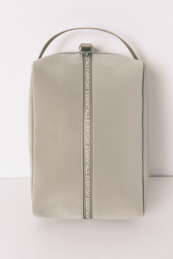 - Color kaki. - Medidas: 9 x 25 x 18 cm. - Lleva contigo todos tus esenciales de belleza.