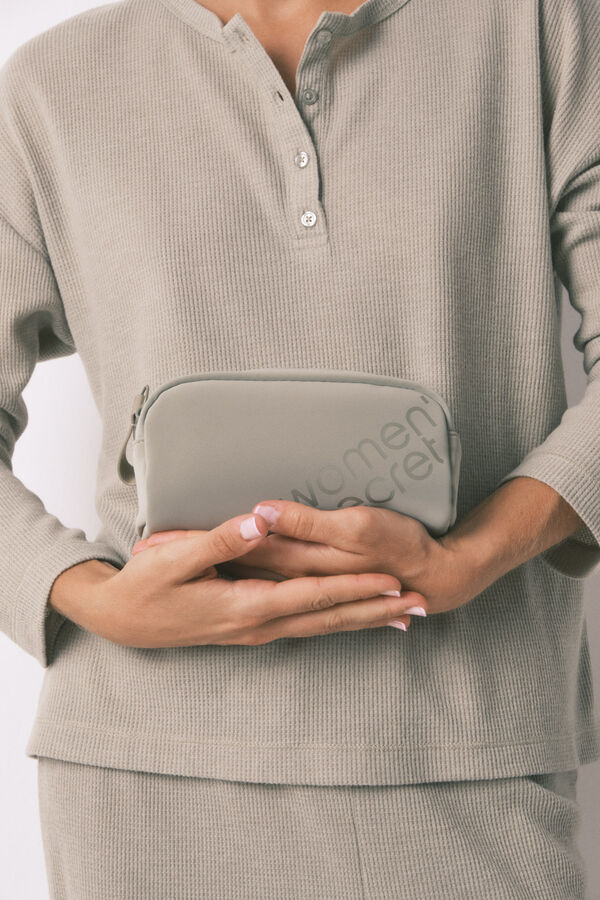 Neceser pequeño, tipo estuche, en calidad rubber y con cierre de cremallera. Posee detalle de logo a tono en la parte frontal. Súper cómodo, con capacidad para transportar todos tus básicos beauty.