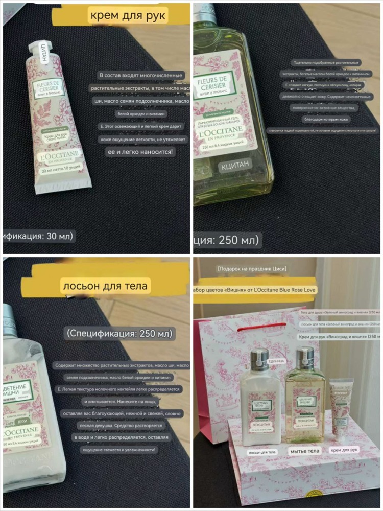 Содержит: Молочко для тела 250 мл + гель для душа250 мл + крем для рук 30 мл