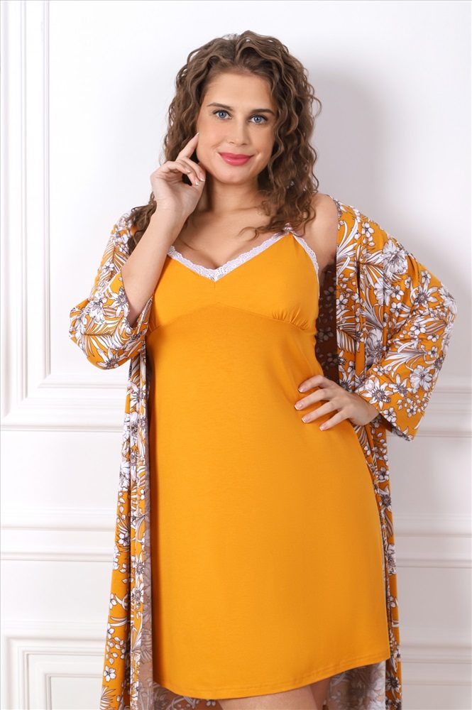 Сорочка молодежная из гладкокрашеного вискозного полотна, расширенная книзу, на узких бретелях. Перед – с лифом «бюстье», образующим v-образный вырез горловины и присборенным по швам стачивания с основной деталью. Спинка – со средним швом, с расширенным и углубленным вырезом v-образной формы, являющимся продолжением пройм. По всей длине вырезы горловины переда и спины отделаны кружевом. Узкие бретели, вытачанные из окантовки, перекрещиваются сзади. Для регулирования длины бретелей предусмотрены пластмассовые кольца-держатели и фиксаторы.