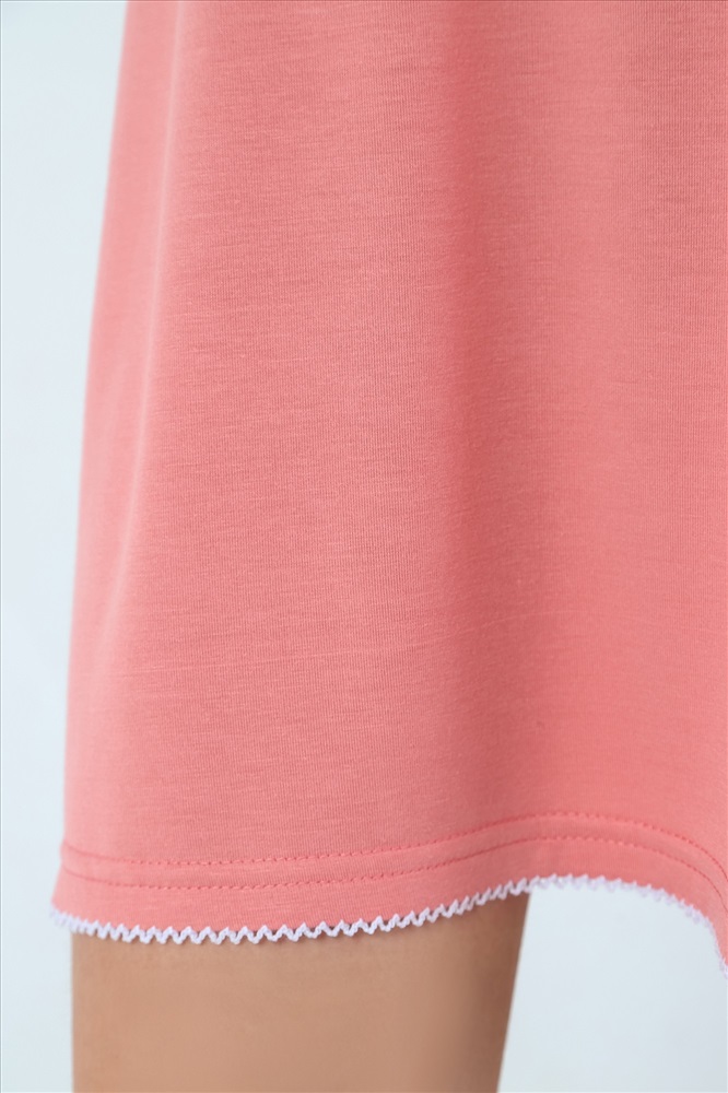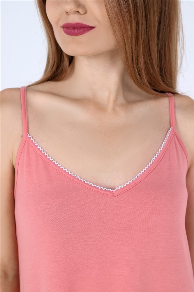 Ткань: Джерси Сорочка - молодежная из гладкокрашеного трикотажного полотна «джерси», свободного покроя, слегка расширенная к низу, без рукавов, с V-образным вырезом горловины переда и спинки. Горловина окантована основным материалом и дополнительно украшена декоративной строчкой «кроше» нитками контрастного цвета. На спинке - декоративный элемент в виде перекрещенных между собой бретелей. Проймы окантованы основным материалом.