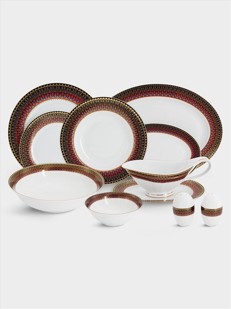 Сервиз обеденный, 6 перс, 27 пр, фарфор P, бело-бордовый, Орнамент, Bukhara. Материал: фарфор Рorcelain. Мыть тёплой водой с применением жидких моющих средств. Не использовать в СВЧ и в посудомоечной машине.