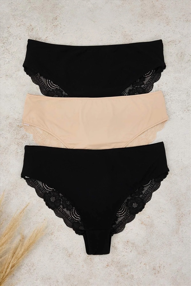 Çok Renkli Hipster Yüksek Bel 3'lü Paket Büyük Beden Külot TBBAW26CM00004