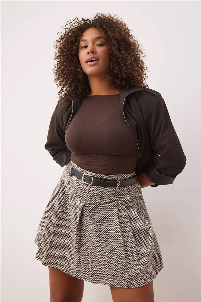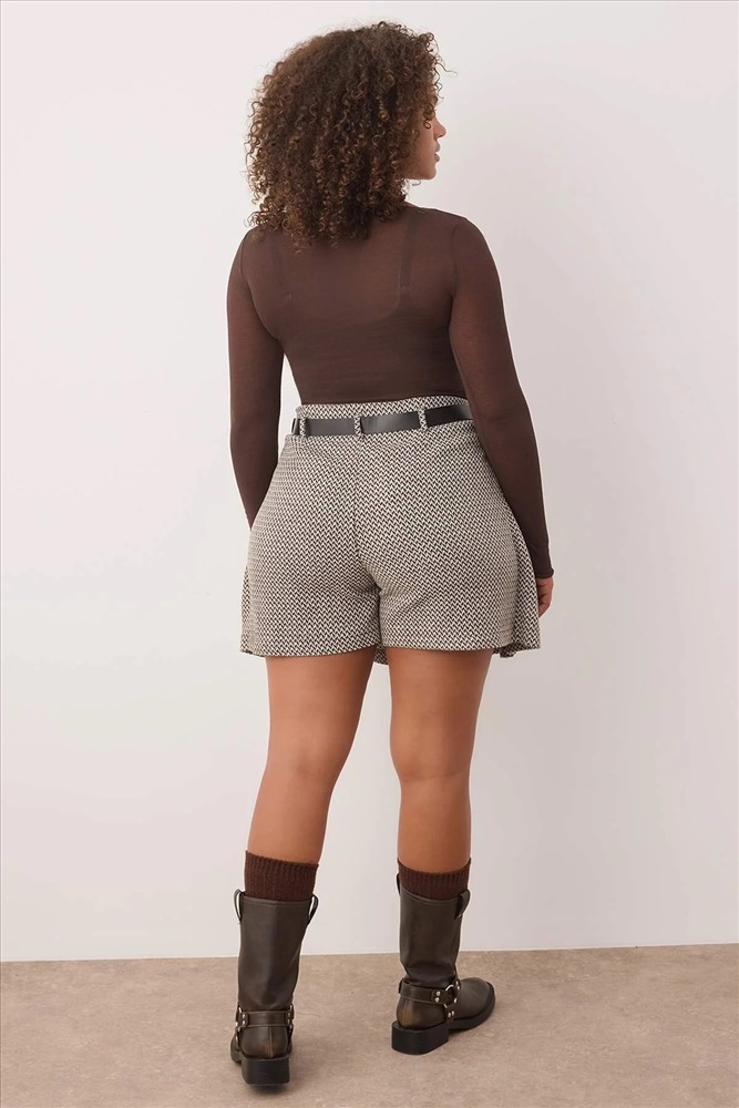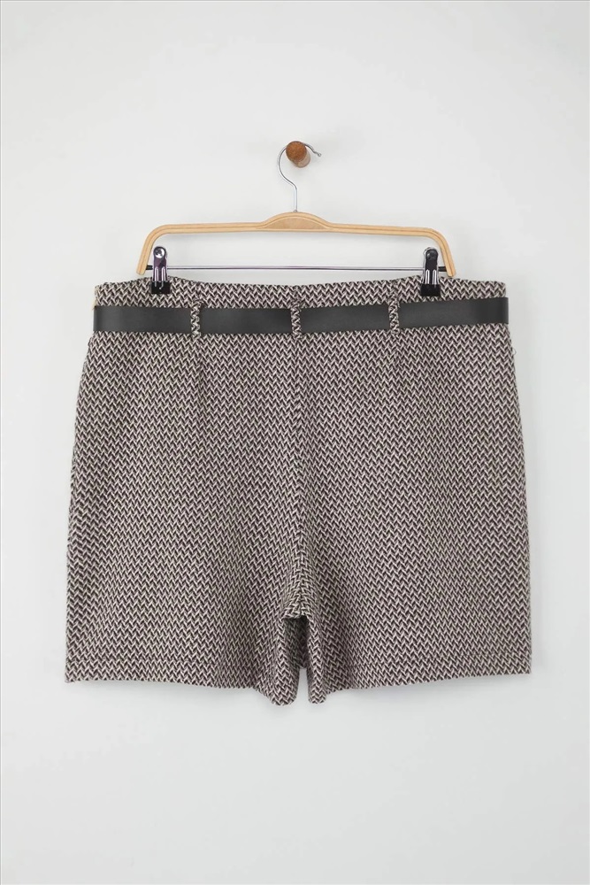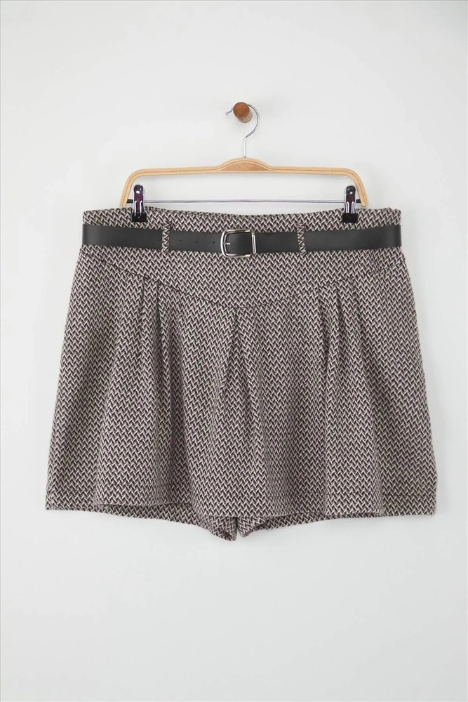 Çok Renkli Kışlık Kemerli Dokuma Kısa Büyük Beden Etek Görünümlü Şort TBBAW26AP00003